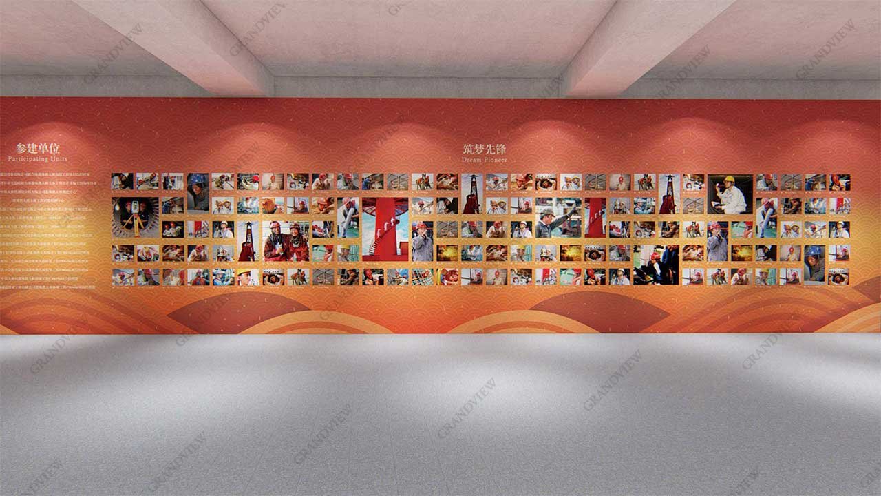 東人工島位于港珠澳大橋水上橋梁和水下隧道的銜接部分,是大橋建設中的關鍵節點工程,也是本次展覽的選址。此次展覽由廣角品牌機構負責展廳的整體布展設計、宣傳片制作以及各標段展示模型制作,對港珠澳大橋建設過程中取得的創新科技成果、設備重器、人文風貌等進行專業化、藝術化展現。
